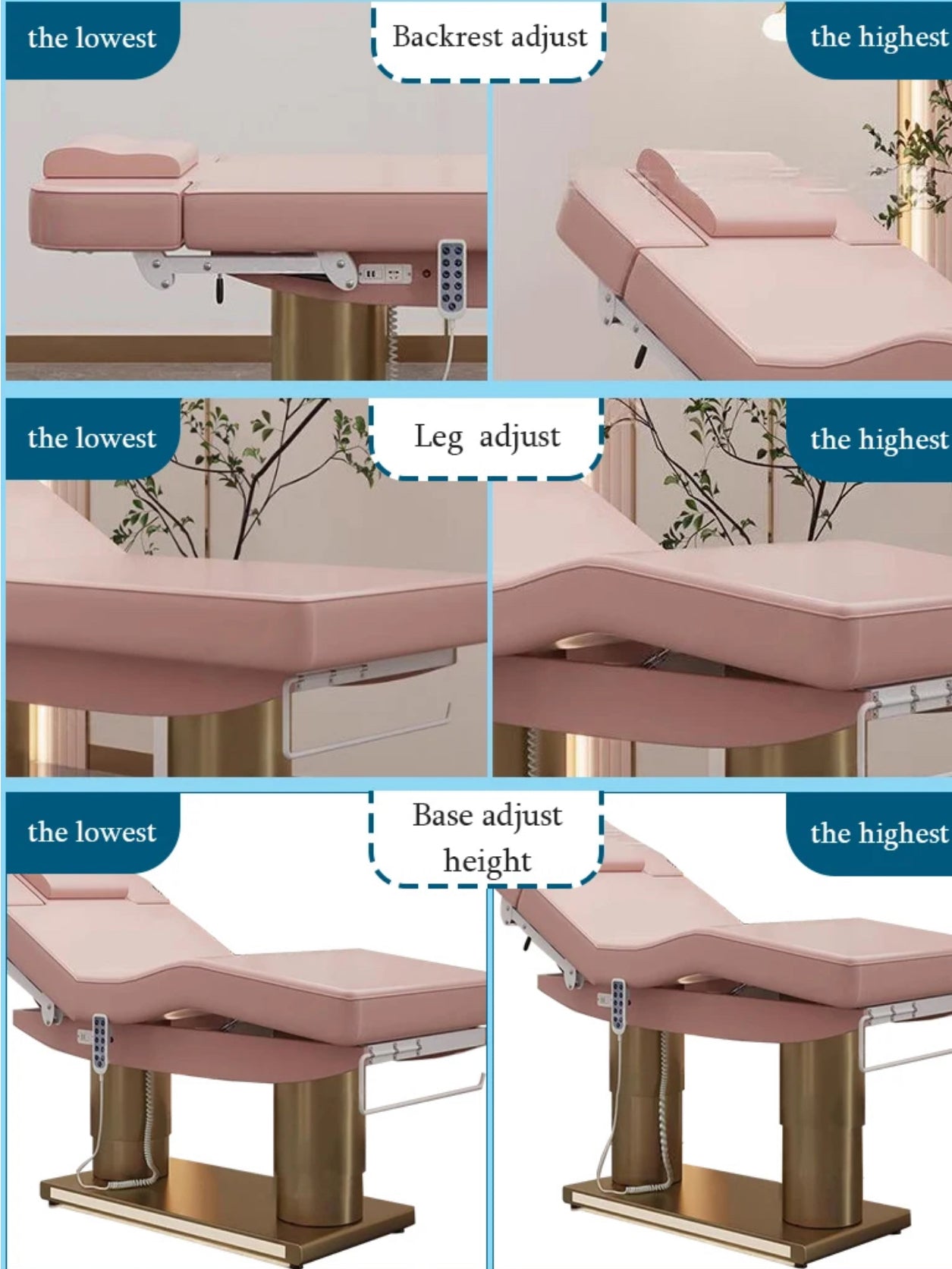 Superior Craftsmanship: Built with premium materials such as commercial-grade board, sleek metal framing, and high-quality motors, this bed is both durable and elegant. Its easy-to-clean surfaces ensure a pristine, professional appearance at all times.
